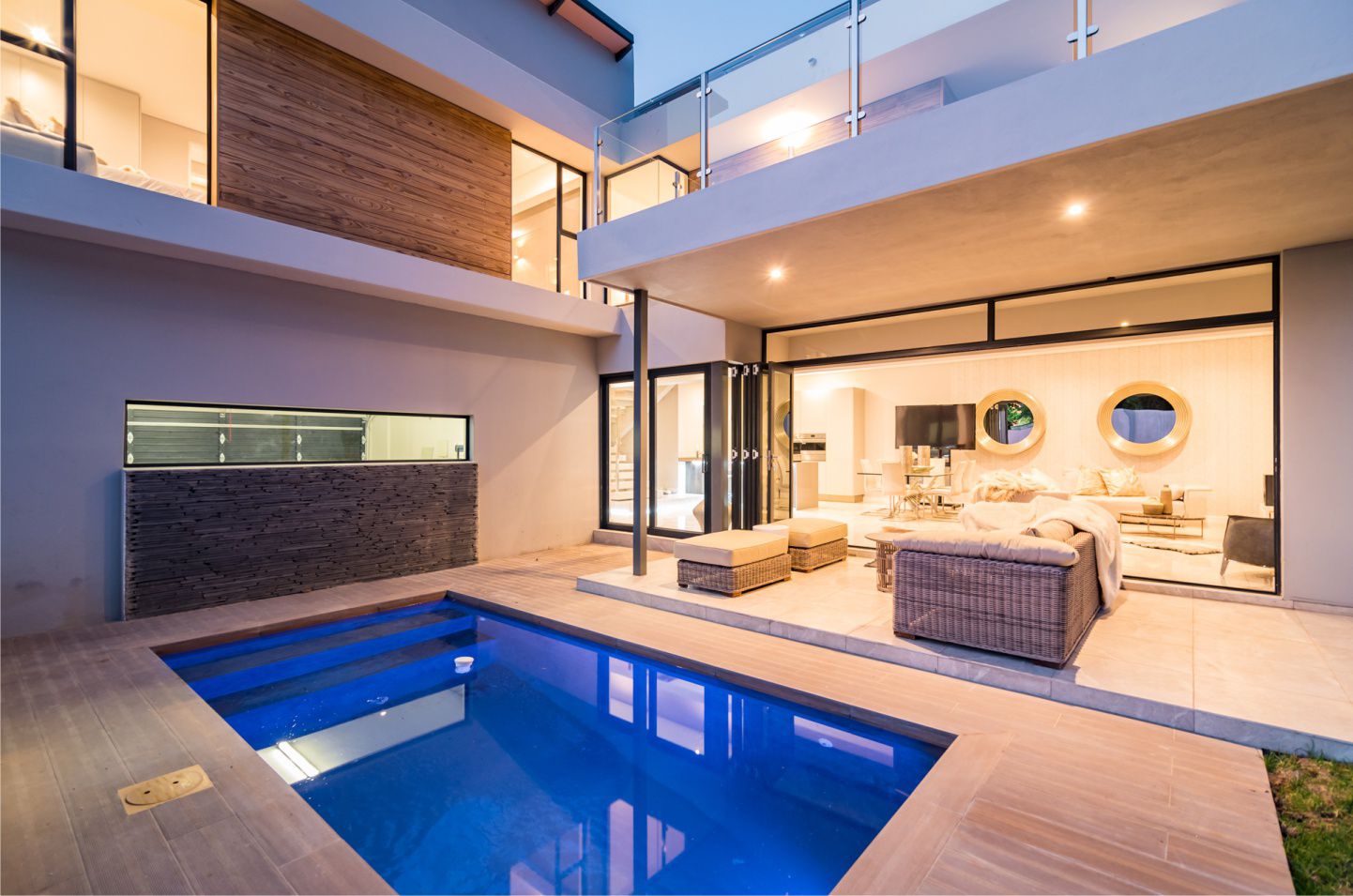 Units have open plan entertainment areas all leading onto patio, garden and pool areas. 2 play areas in the complex for children which will include jungle gyms, slides and a play park. Stand sizes range from 350sqm to 450sqm and unit sizes at 320sqm. Priced from R5,5 million to R6, 6 million. Vat included – no transfer duty payable!!